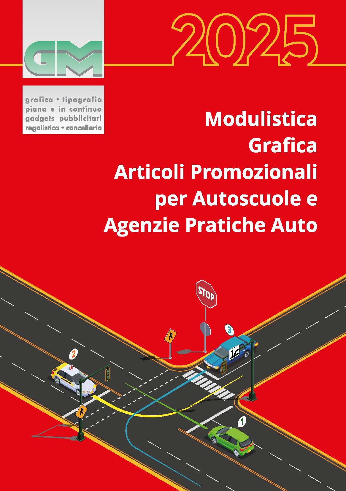 Catalogo specifico comprendente modulistica, grafica, prodotti di tipografia, gadgets, idee per agenzie pratiche auto, studi consulenza automobilistica, autoscuole e scuole nautiche.