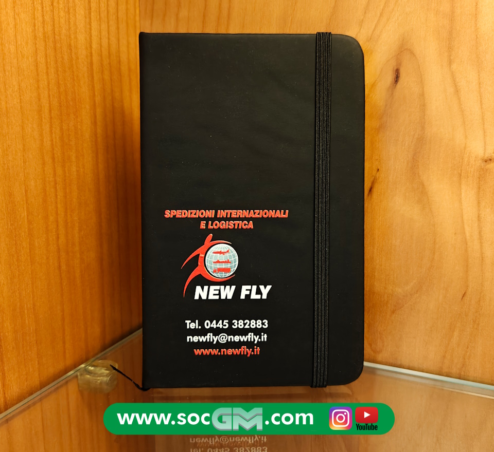 Quaderno A6 con copertina rigida soft touch e chiusura con elastico.