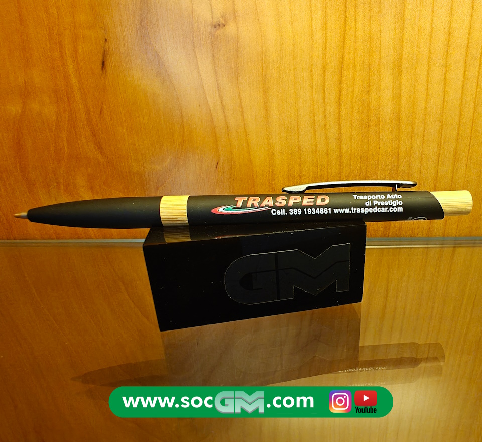 Penna a sfera in alluminio riciclato e bamboo,una scelta sostenibile per una scritturaconsapevole. Inchiostro jumbo blu. Colori: bianco - grigio - nero - blu nevy