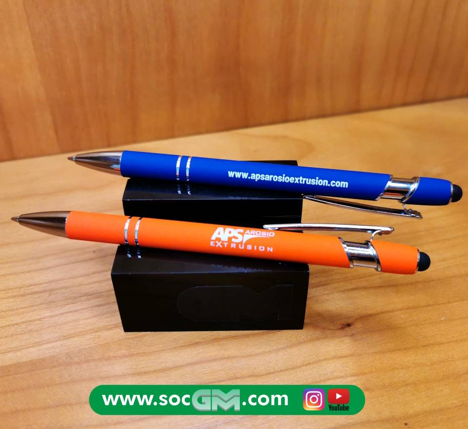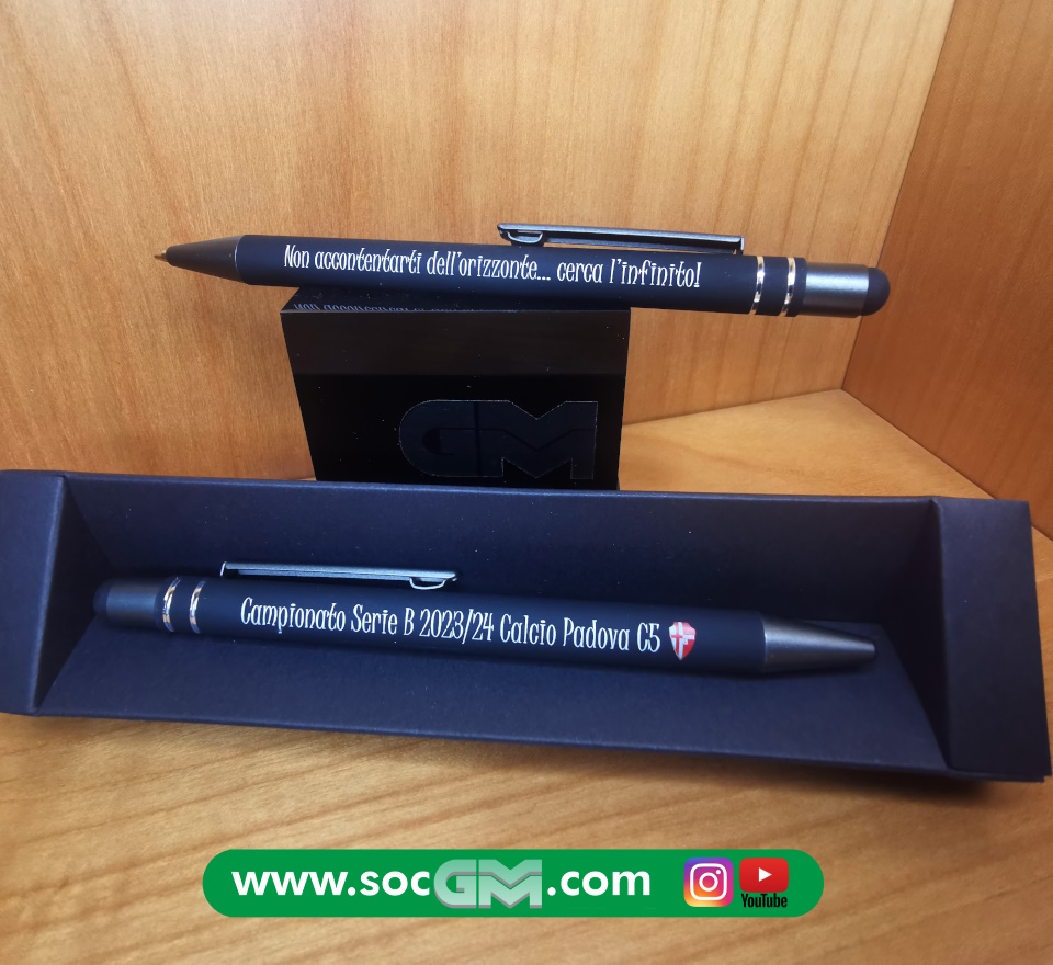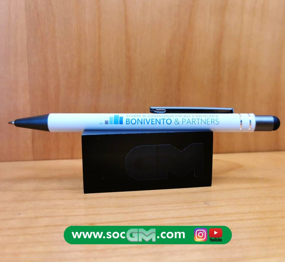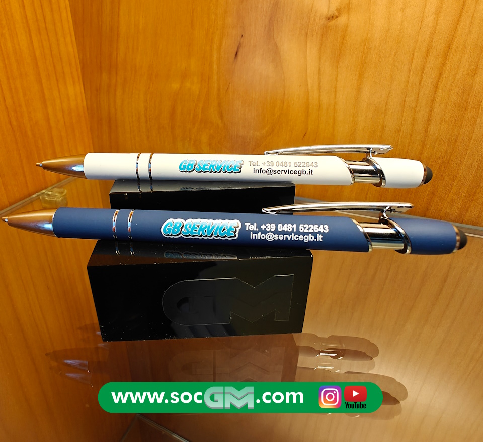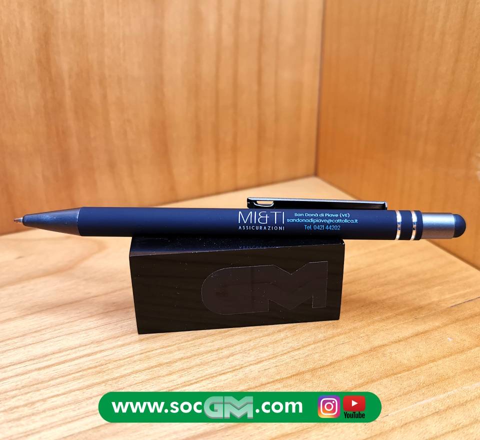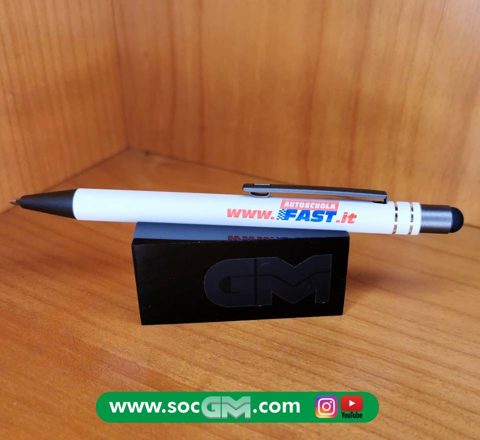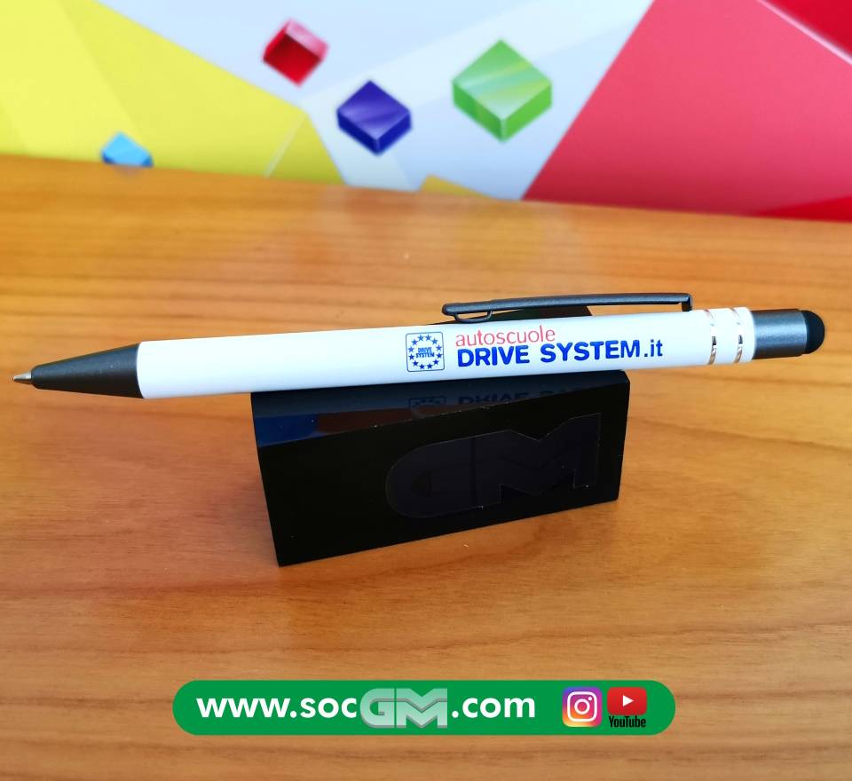 Elegante penna in soft touch con gommino per superfici touch screen, inserti in metallo, refill jumbo, con possibilità di stampa A COLORI sul fusto del proprio logo aziendale.