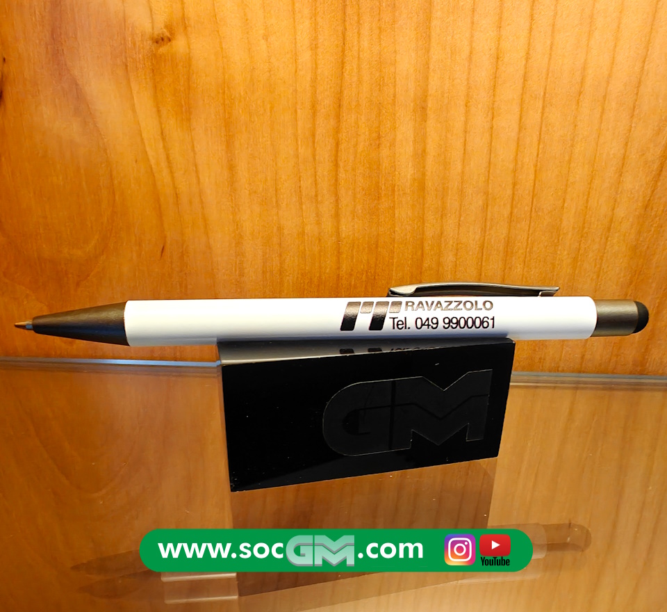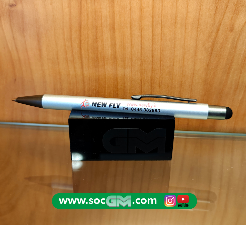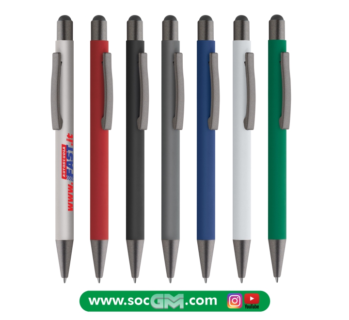 Penna a sfera in metallo meccanismo a scattofusto matto satinato rifiniture metallo, colore grigio gommino per touch screen