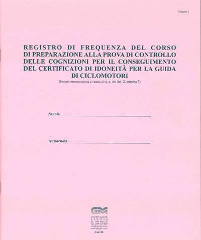 Registro di frequenza del corso di preparazione alla prova di controllo delle cognizioni per il conseguimento del certificato di idoneit� di ciclomotori.