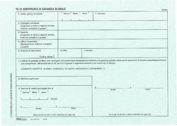 TC 31 CERTIFICATO DI GARANZIA
