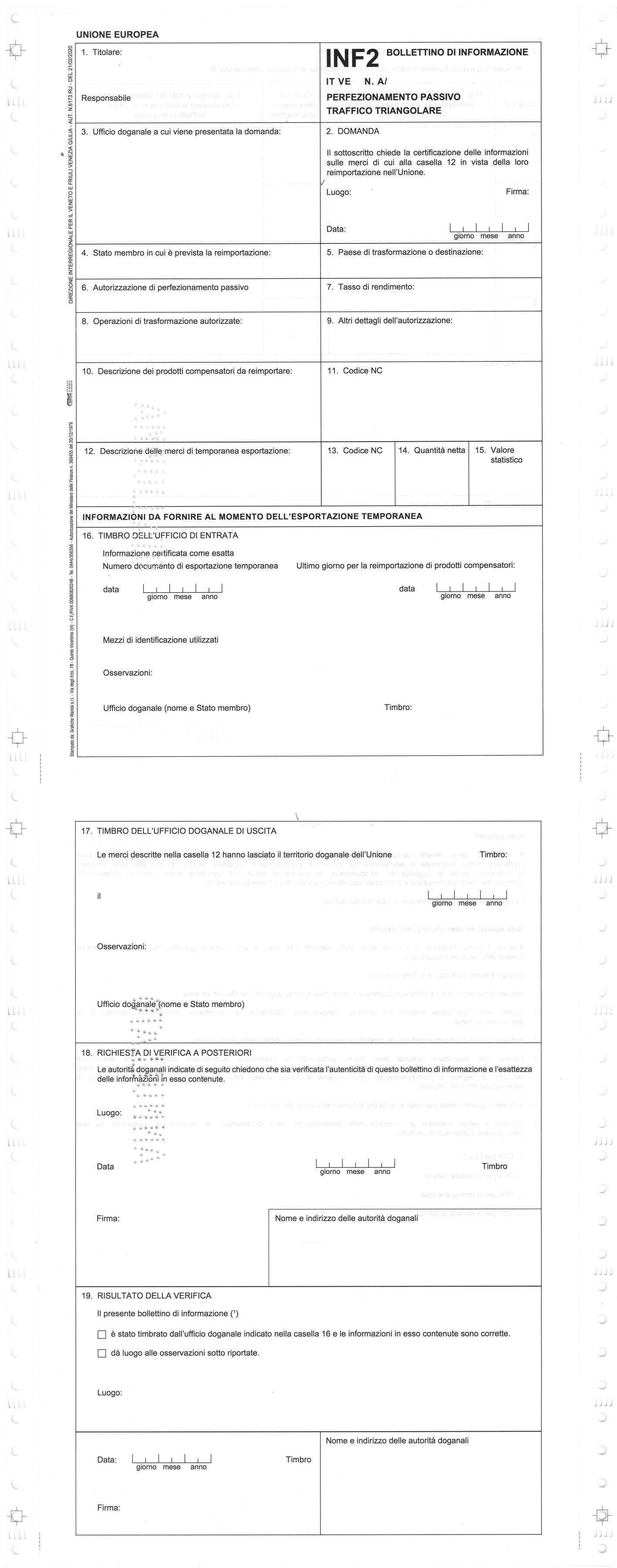 Nuovo INF 2 Bollettino di informazione perfezionamentopassivo traffico triangolare con autorizzazione compartimentale.