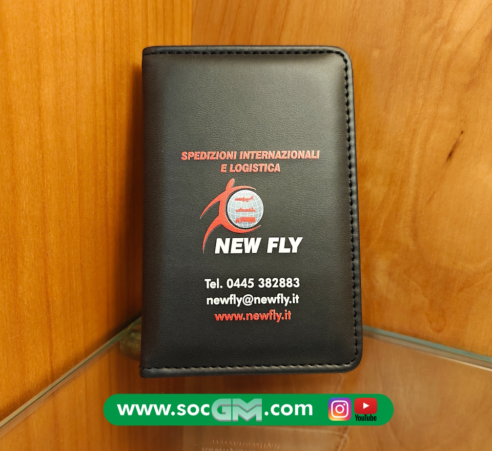 Save card - porta card / tessere in ecopelle di alta qualita' con protezione RFID anti clonazione carte di pagamento. Puo' essere personalizzato a caldo o a secco.