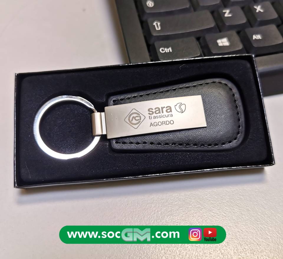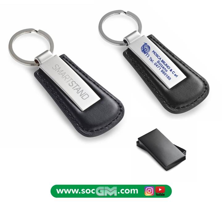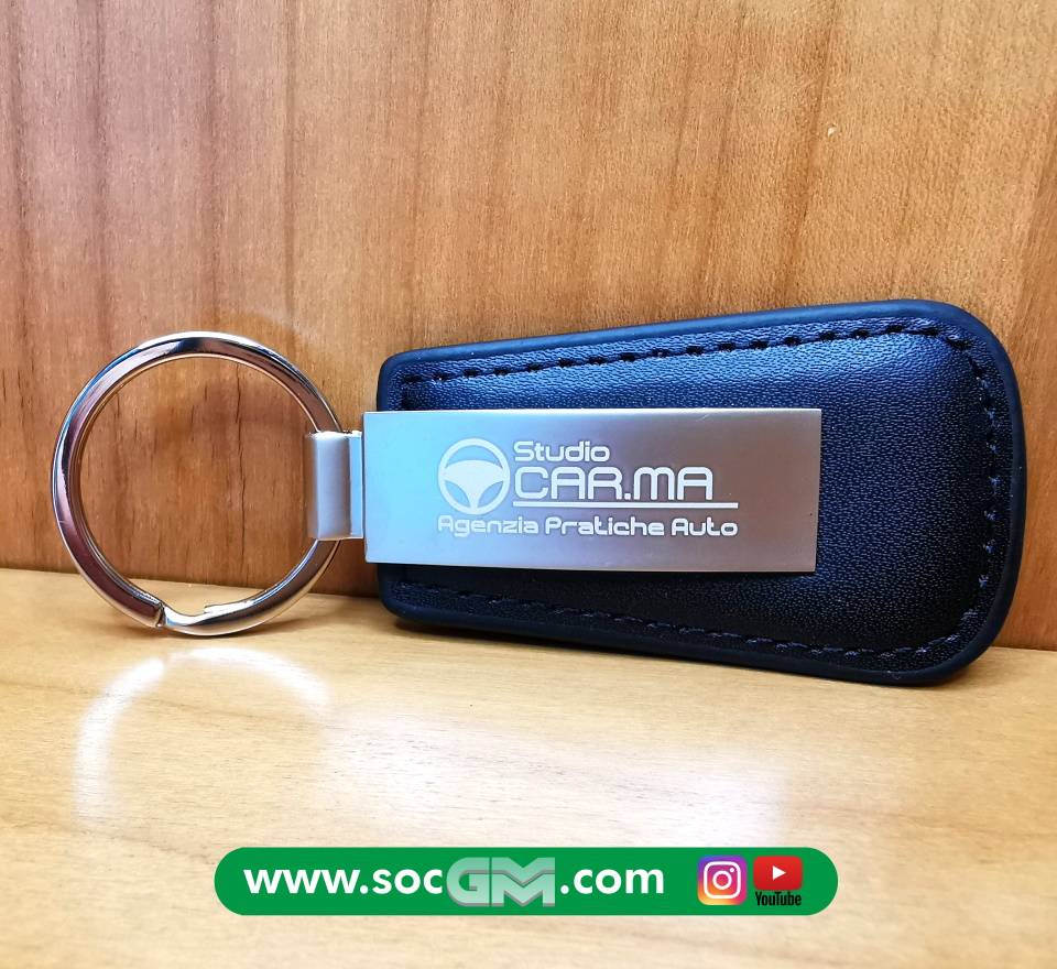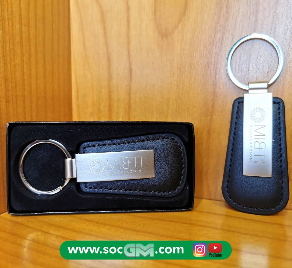 Portachiavi in metallo e similpelle, elegante, funzionale, leggero e resistente. La fettuccia esterna in similpelle evita che quella centrale, in metallo, possa urtare e graffiare. Può essere personalizzato con incisione laser o stampa a colori!�