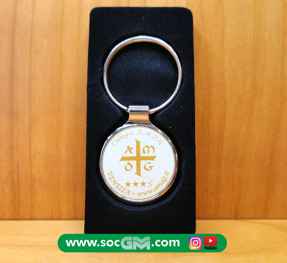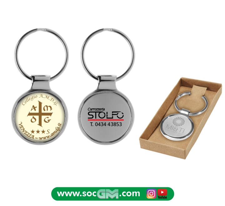 Portachiavi rotondo lucidato a mano con finitura lucente. Può essere personalizzato con: - incisione laser - stampa tampografica a colori- etichetta resinata. Fornito in confezione regalo.