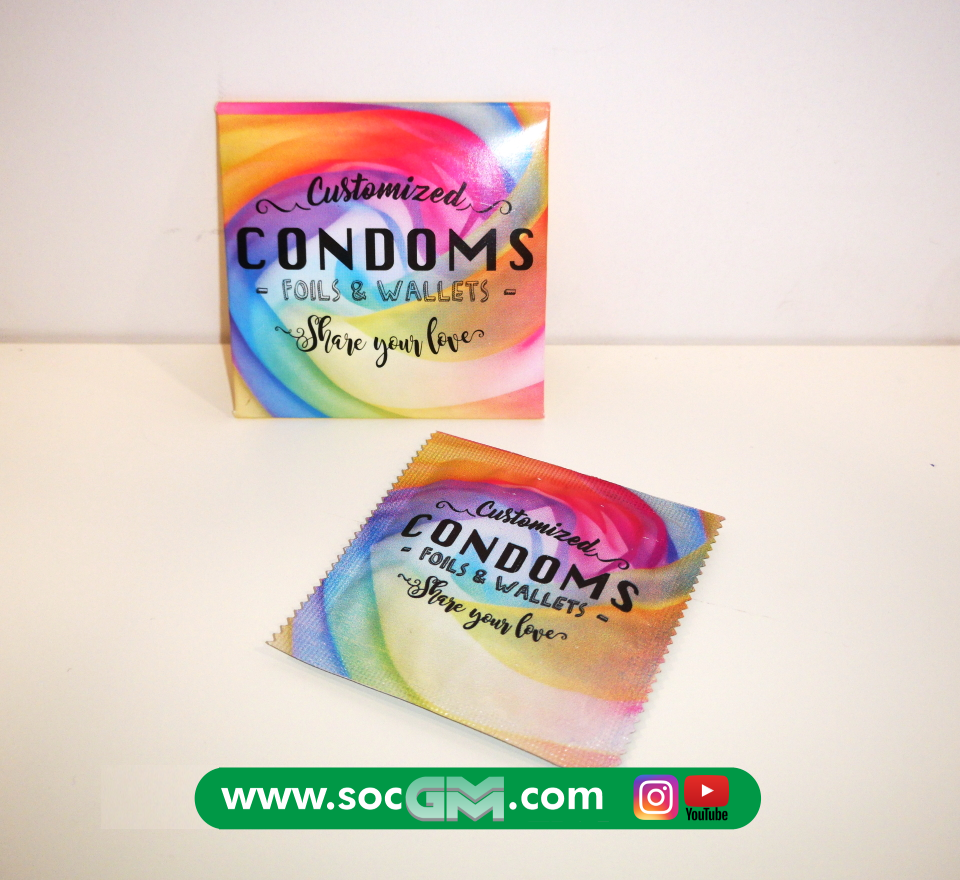 La personalizzazione avviene sulla confezione in cartoncino o, per quantita' superiori, direttamente sul foil del preservativo.
