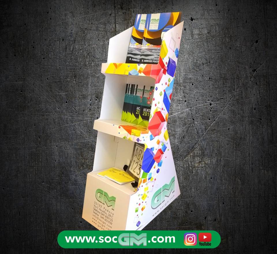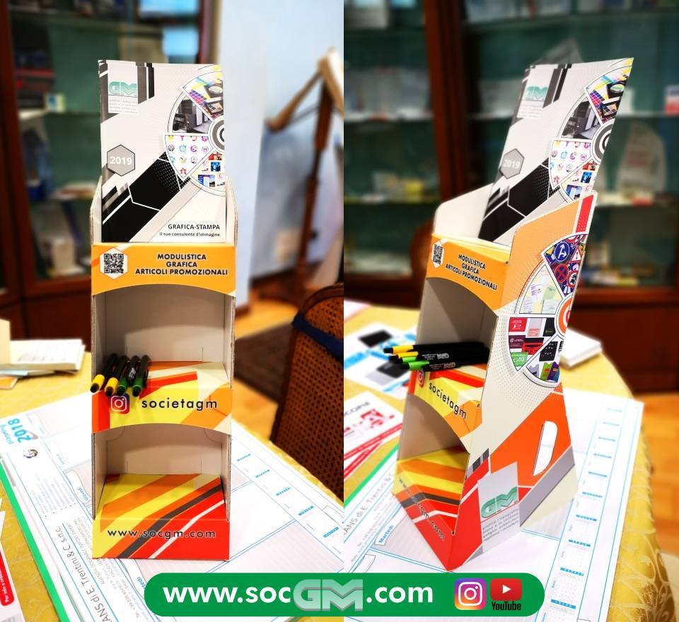 Espositore in cartone, da pavimento o da scrivania, porta cataloghi, depliant, brochure, campioni. Ideale per l'ufficio o manifestazioni. Personalizzabile su ogni lato a colori. Possibilità di diversi formati e pochissimi pezzi!