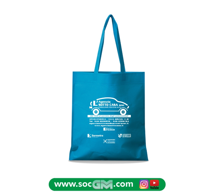 Shopper personalizzata in tnt formato cm 38x42 con manici medi.Personalizzata ad 1 colore su 1 lato.Tempi di consegna:15 giorni data conferma bozze