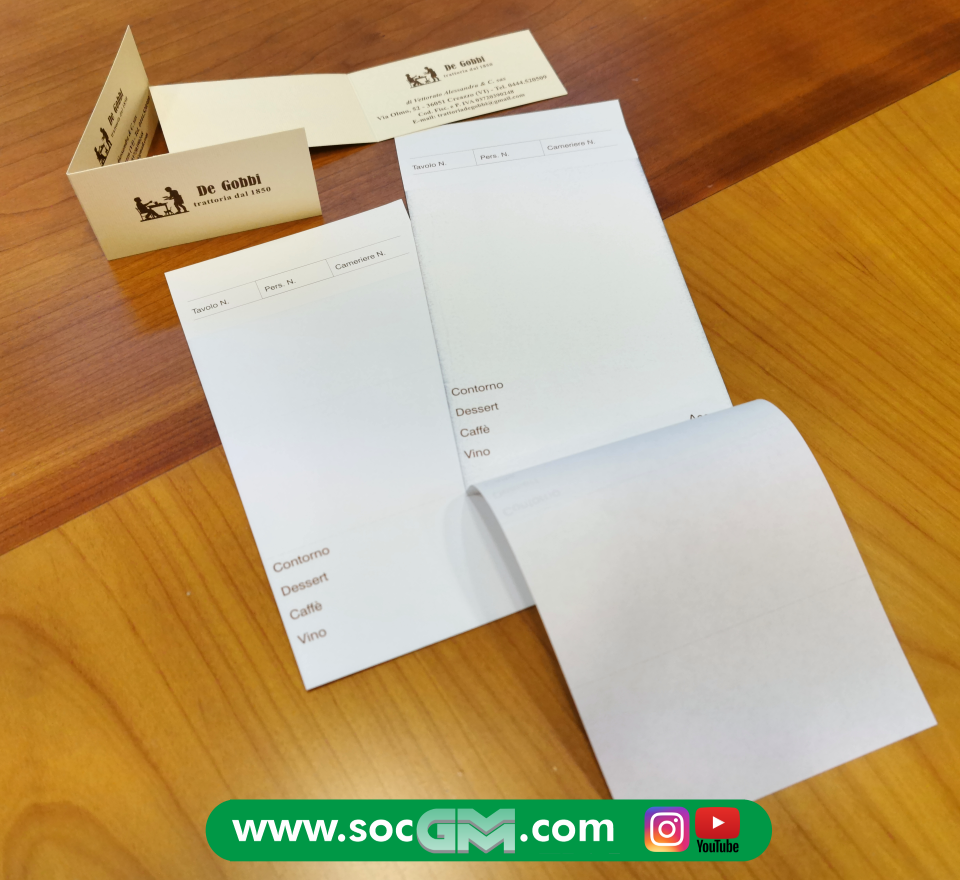 Biglietti da visita, menù, listini, fatture - ricevute fiscali