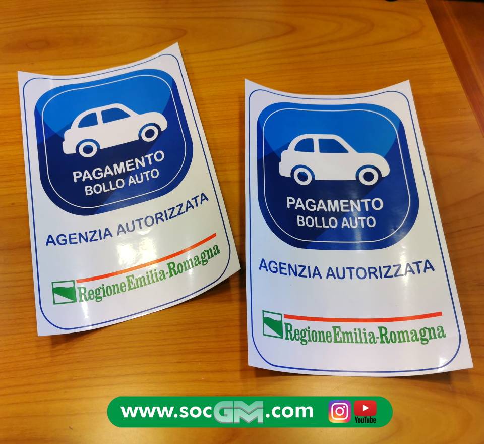 Contrassegno adesivo di autorizzazione al pagamento bollo auto. Realizzabile anche in vetrofania (si attacca dall'interno della vetrina ma è leggibile all'esterno) o con personalizzazioni particolari (prezzo su preventivo)