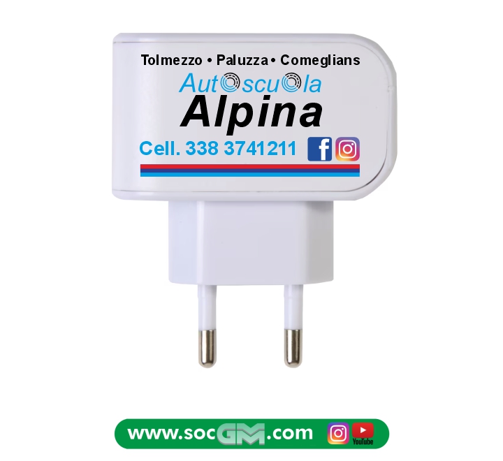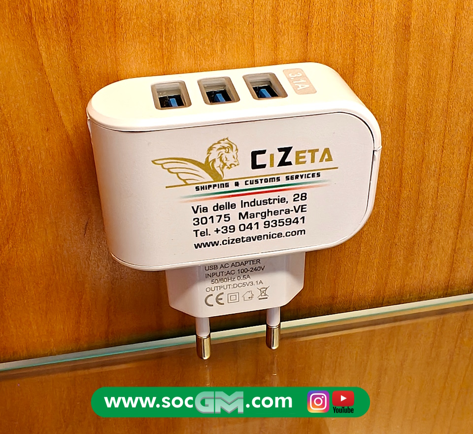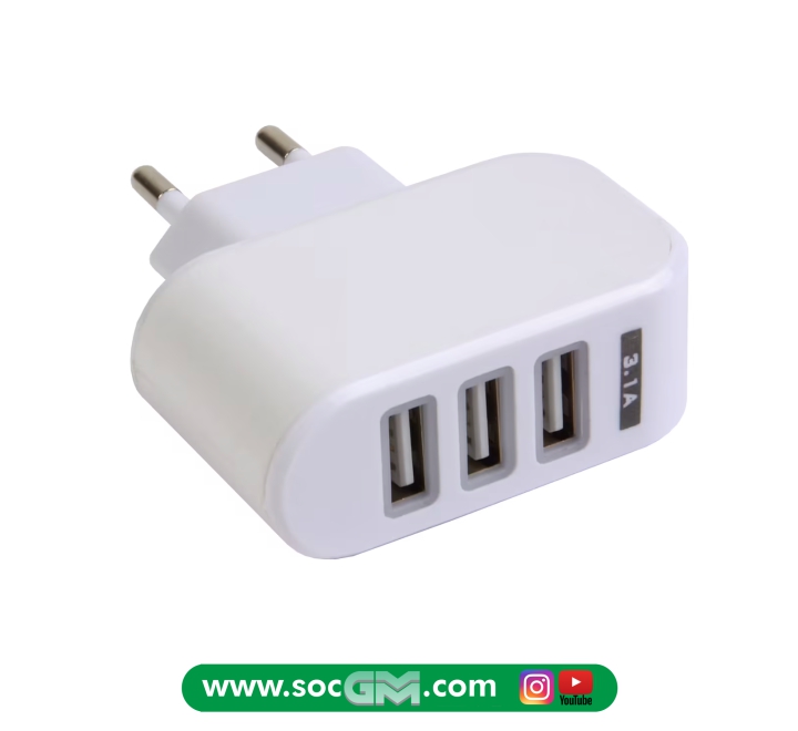 Caricatore multi-porta USB da parete ,in plastica con tre ingressi.(3 ingressi ognuno da 5V-1000 mA)Colore bianco