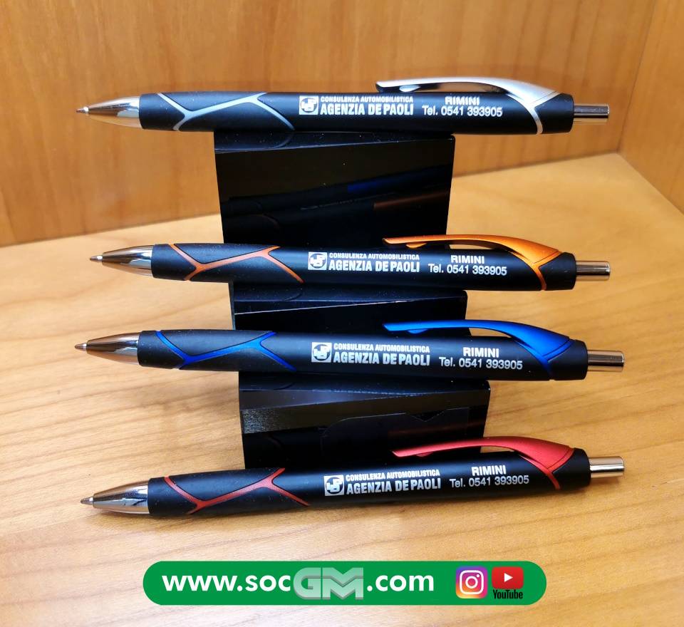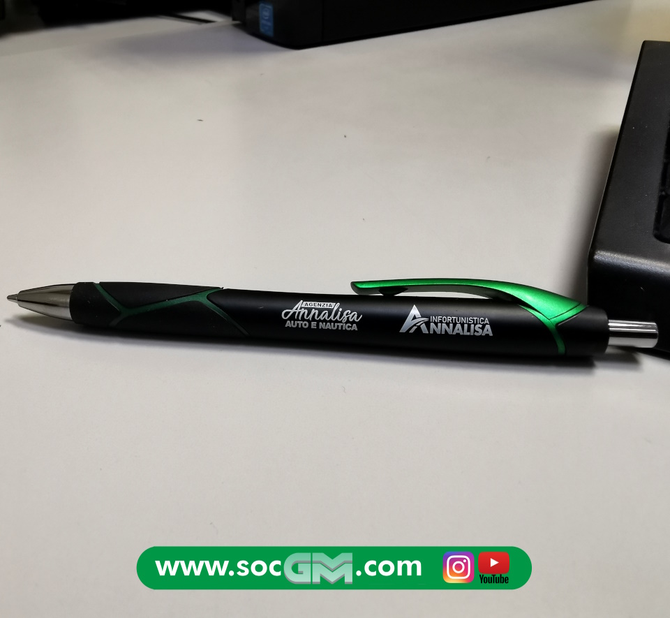 Penna a sfera in plastica con meccanica a pulsante, fusto nero metallizato, particolari metallizzati, grip con speciale finitura a intarsio, puntale e pulsante cromatie inchiostro nero ultrascorrevole