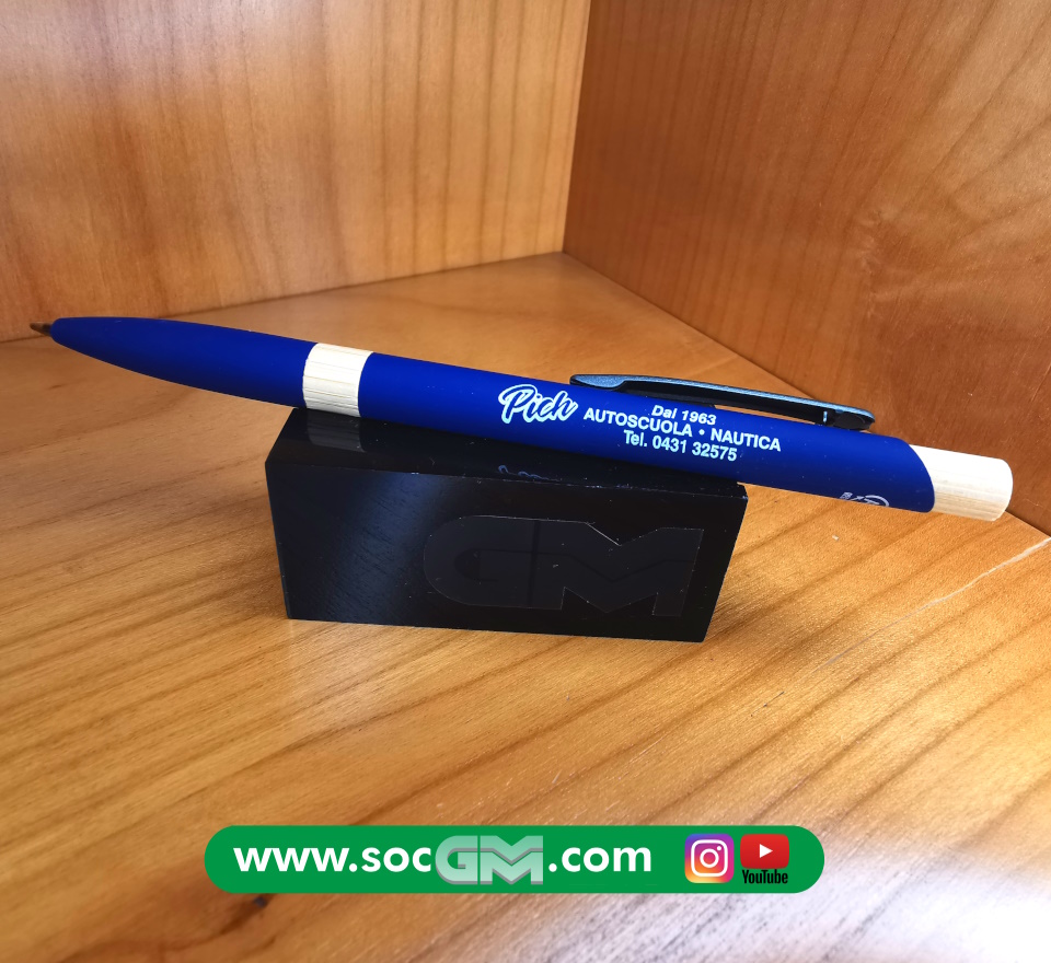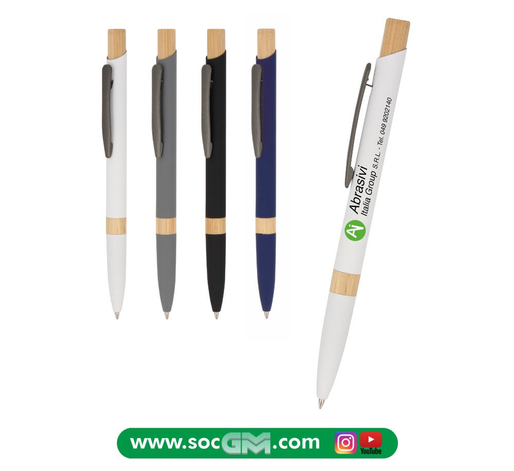 Penna a sfera in alluminio riciclato e bamboo,una scelta sostenibile per una scritturaconsapevole. Inchiostro jumbo blu. Colori: bianco - grigio - nero - blu nevy