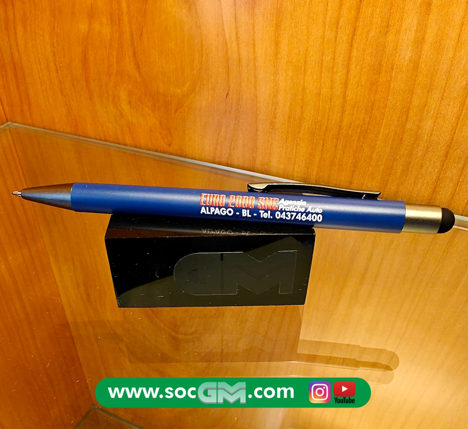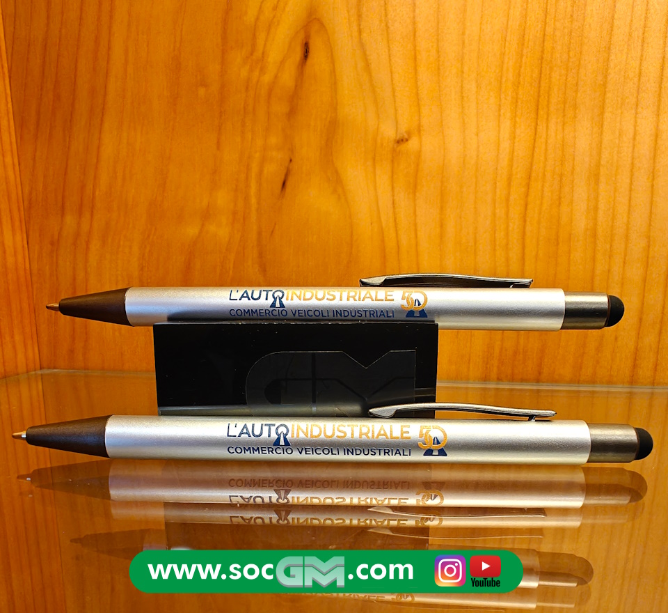 Penna a sfera in metallo meccanismo a scattofusto matto satinato rifiniture metallo, colore grigio gommino per touch screen