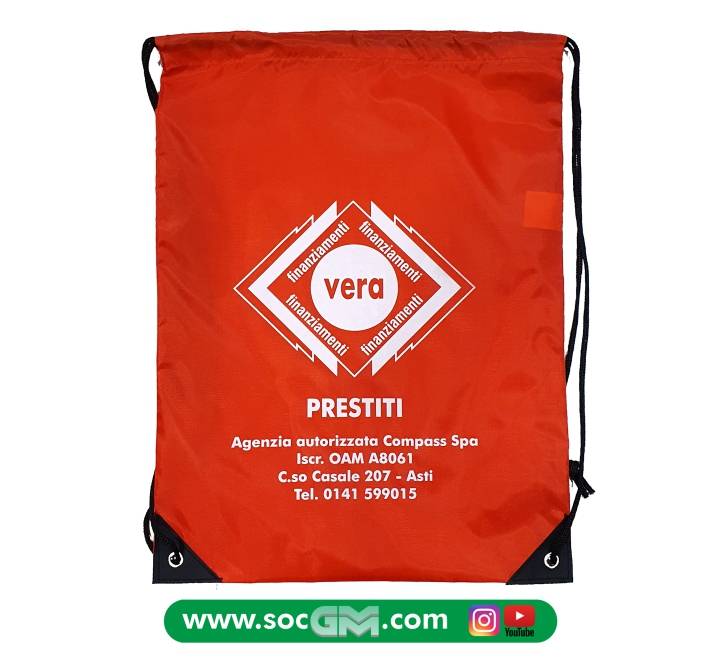 Sacche porta documenti - porta scarpe, utilizzabili come piccoli zainetti: leggeri, resistenti, in diversi formati, materiali, colorazioni e dal costo molto contenuto!Stampa 1 colore su 1 lato.