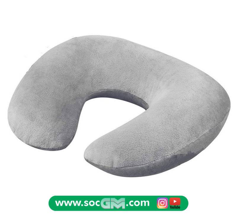 Cuscino da viaggio in velluto per cervicale, colore grigio chiaro con interno gonfiabile.