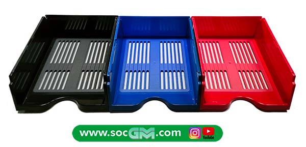 Stock di 6 vaschette porta documenti grande, 2 nere, 2 rosse e 2 blu